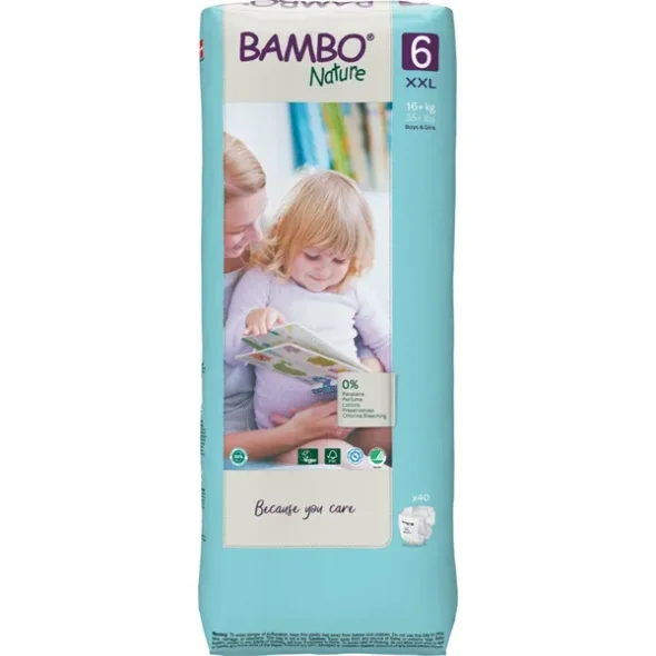 Produktbeskrivelse:Bambo Nature bestræber sig ikke blot på at levere en behagelig, absorberende ble til dit barn, men også på at have omtanke for miljøet under vores fremstillingsproces. Vores bleer produceres med vedvarende energi (dækket af vedvarende energicertifikater) på vores danske produktionssted. Samtidig garanterer vi, at vores bleer er fri for farlige kemikalier og parfume for at minimere risikoen for allergi og bleudslæt. Vores miljømæssige engagement omfatter også emballagen til vores bleer, som består af 30% genanvendt plastik. Det genvundne plastmateriale stammer fra husholdningsaffald, og er blevet renset og sorteret grundigt. Emballagen bør genanvendes sammen med andet plastikaffald. Bambo Nature bleen er certificeret med Svanemærket og FSC®. Derudover er bleen dermatologisk testet og anbefalet af Asthma Allergy Nordic.