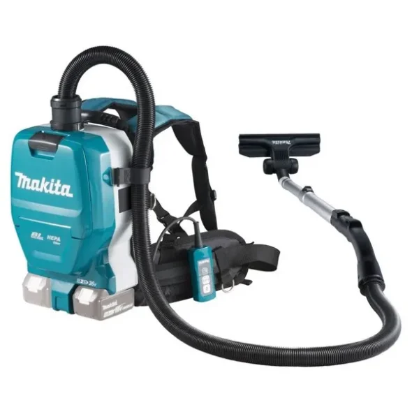 Rygstøvsuger med justerbar bæresele og hofterem til at gøre mobilt arbejde lettere. Effektivt HEPA-filter og 2-liters støvpose. Tre styrker og separat LED-lampe. Udstyret med rengørings-kit. Leveres uden batteri og lader.