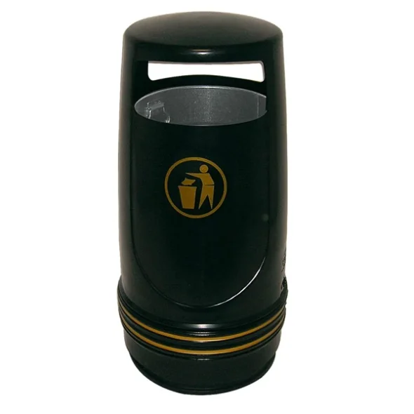 Produktbeskrivelse:Robust og praktisk affaldsspand i kraftig plast med indkast fra to sider. Med top der beskytter affaldet mod regn og fugle.