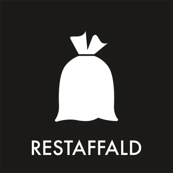 Piktogram, 6x6cm, sort, folie, til restaffald, selvklæbende