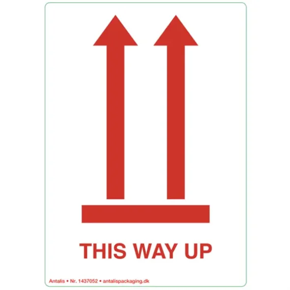 Etiketter selvklæbende tryk:This way up 120x86mm 500stk/rul