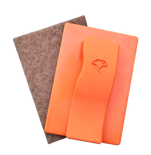 Vores valnødspads sidder sikkert, så du kan skrubbe kontrolleret og præcist uden at den glider. De er lavet af knuste valnøddeskaller, hvilket giver en hård men sikker overflade til sarte ruder og rammer.