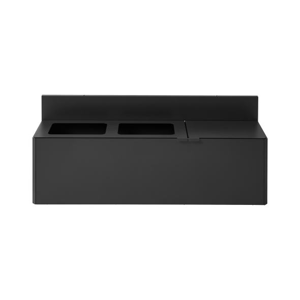 Affaldssystemet fastgøres nemt på væggen ved hjælp af den skjulte vægskinne bagpå. Denne affaldsstation er udstyret med høj plade bagpå for at beskytte væggen mod smuds, som nemt kan tørres af. Affaldssystemet leveres med løftelåg og inderbeholdere med håndtag for nem håndtering ved tømning. Skruer mv. til montering medfølger ikke.