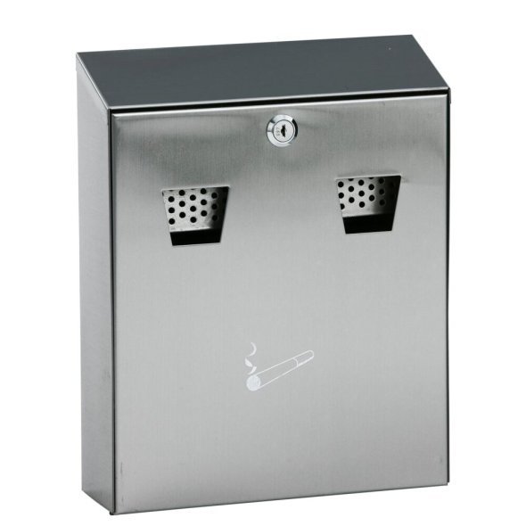 Produktbeskrivelse: Praktisk askebæger til vægophæng med to indkast. Inderspanden er produceret i galvaniseret stål. Nem at tømme, da man blot åbner frontpanelet med tilhørende nøgle.