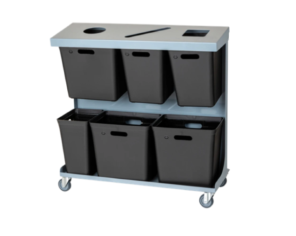 Affaldsvogn 6 x Kildesortering - m/3 huller til sortering