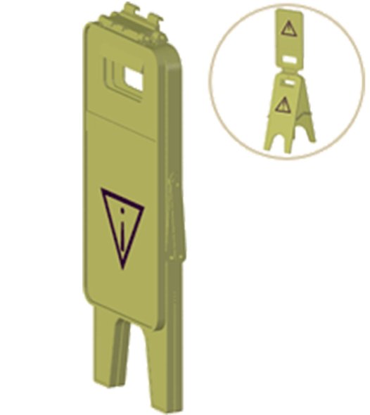Til opsætning ved rengøring af trafikerede områder. Kan let slås op eller klappes sammen.
