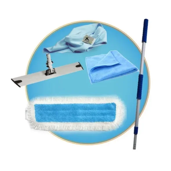 1 x Teleskopskaft med skumgreb1 x Superior fremfører alu/sort 40 cm3 x Mikrofiber våd/Fugtmoppe 13 x 47 cm3 x Mikrofiber klude blå 40 x 40 cm3 x Mikrofiber glasklude blå 40 x 40 cm