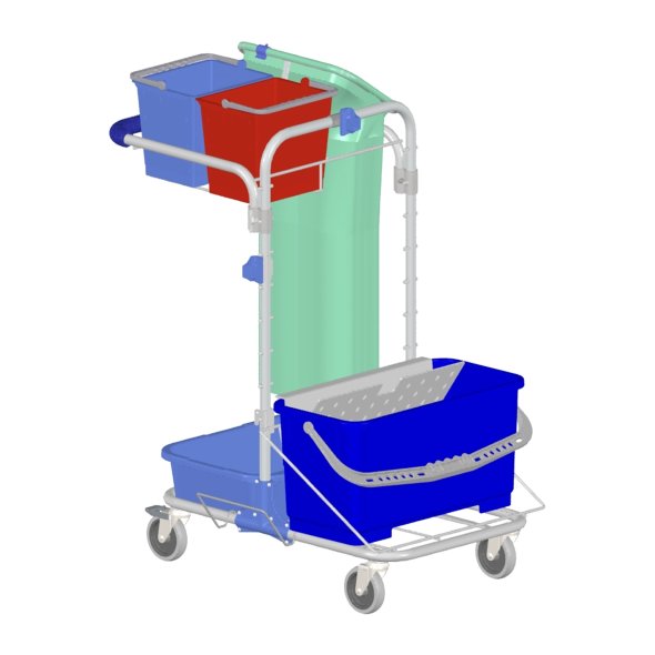 Denne rengøringsvogn er perfekt til professionelle miljøer, hvor der er behov for praktisk og fleksibel rengøringsudstyr.