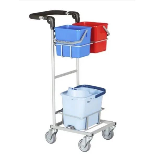 Denne vogn hører under Ergo Slimline. Med sine 40 x 40 cm. På bundrammen fylder vognen minimalt, når håndtaget er foldet ned. Til vognen medfølger 2 stk 6 liters spand & Mery spand hvortil der er redskabsholder imellem spandene. Vognen leveres med 4 stk 100 mm hjul.