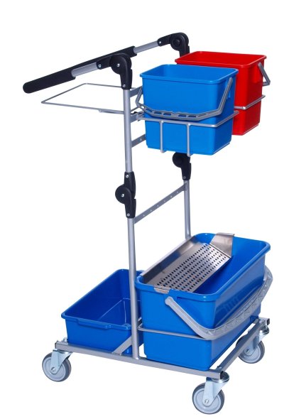 Til vognen medfølger 2 stk 6 liters spand, 22 liter spand med dryprist samt 60 liter affaldsstativ med plastbakke som støtte. Desuden medfølger 2 stk. redskabsholder samt. 1 stk. mopholder.