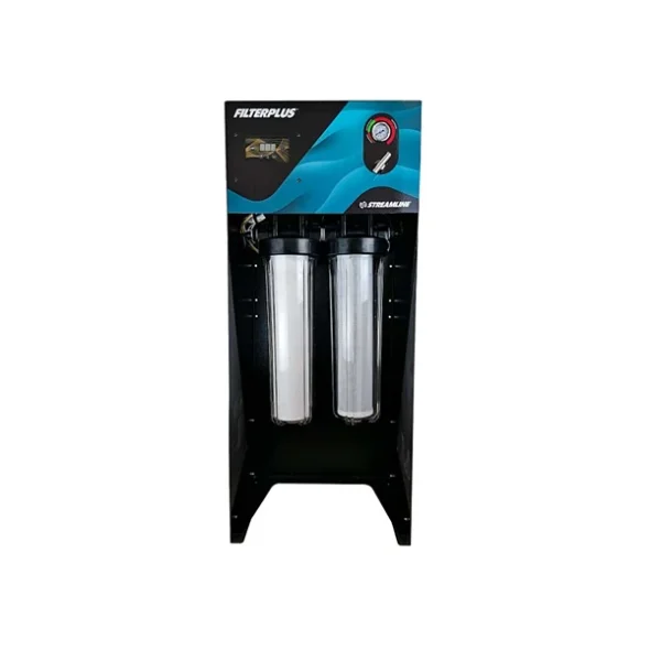 The Filterplus® Maxi RO Static System is a fully commercial filtration unit that is designed to be freestanding. In addition, the Filterplus® Maxi RO Static System is capable of producing high volumes of pure water continuously. This RO unit has a waste adjustment valve that allows the operator to adjust the pure water ratio as needed. Moreover, an optional DI filter vessel can easily be added on to the unit, to provide a final polish if required. The RO unit is fully automatic, furthermore, allowing for flushing and maintenance of the unit and providing a highly efficient pure water system. The RO unit has a stainless-steel support frame to minimize rust in wet environments.