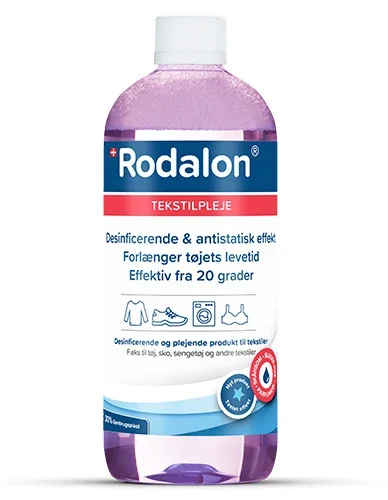 Rodalon Tekstilpleje er et skånsomt vaskemiddel til tekstiler, som kan anvendes i skyllemiddelskuffen, til forvask eller som erstatning for almindeligt vaskemiddel. Hvis tøjet ikke har pletter, kan man helt undlade vaskemiddel og kun bruge Rodalon Tekstilpleje. Det kan bruges på alle vaskbare tekstiler og har en desinficerende og antistatisk effekt allerede ved 20 grader.
