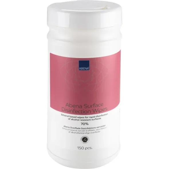 Brugsanvisning:ABENAs Overfladedesinfektionsservietter er klar til brug. Luk låget på dispenseren straks efter, der er udtaget en klud, så fordampning minimeres. Overfladen der ønskes desinficeret, skal rengøres og tørres af forinden. Under desinficeringen, skal overfladen eller genstanden holdes fugtig med wipen i mindst 30 sekunder for at opnå den ønskede effekt.