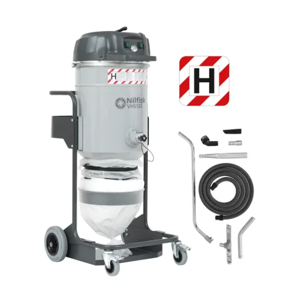 VHS120 er den ideelle 1-fasede støvsuger, når der er behov for høj ydeevne i et kompakt design til opsamling af alle typer sundhedsfarligt støv.