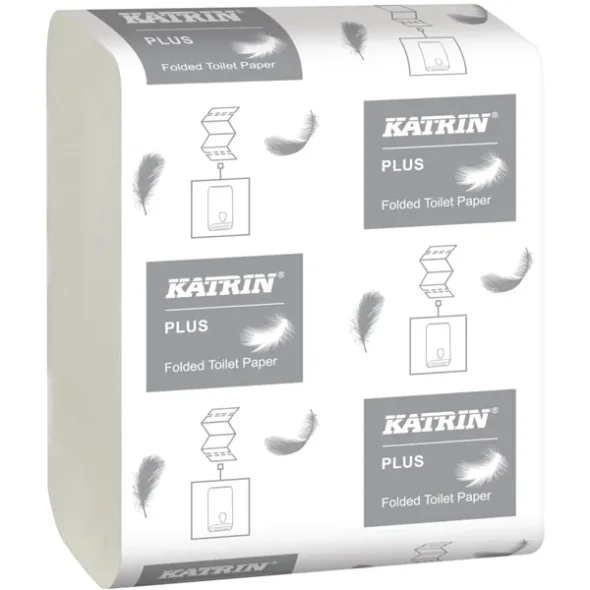 Toiletpapir i ark, Katrin Plus, 2-lags, 23x10,3cm, hvid, 100% nyfiber