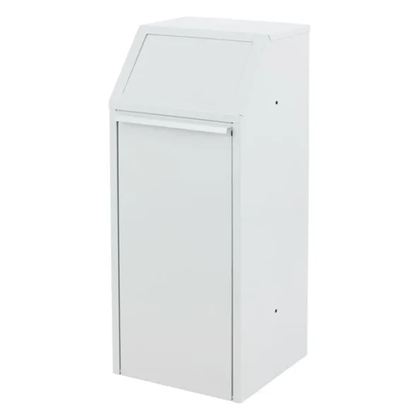 Produktbeskrivelse:70 liters affaldsspand i kraftig kvalitet med frontåbning, så der undgås tunge løft ved tømning. Ideel til industri.