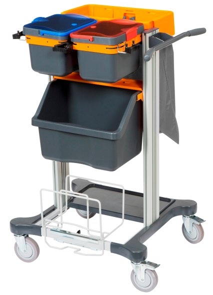 TASKI rengøringsvogn med åbne skuffer, til mindre arealer.