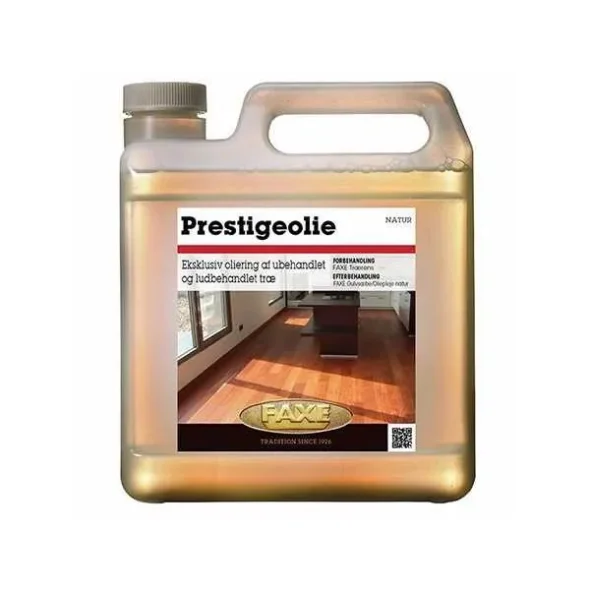 Med FAXE Prestige Olie i Natur fås et eksklusivt og effektivt produkt til den afsluttende behandling af ubehandlede eller ludbehandlede trægulve. Anvendes på trægulve, der har gennemgået afhøvling eller afslibning for en naturlig, smudsafvisende og slidstærk overflade.