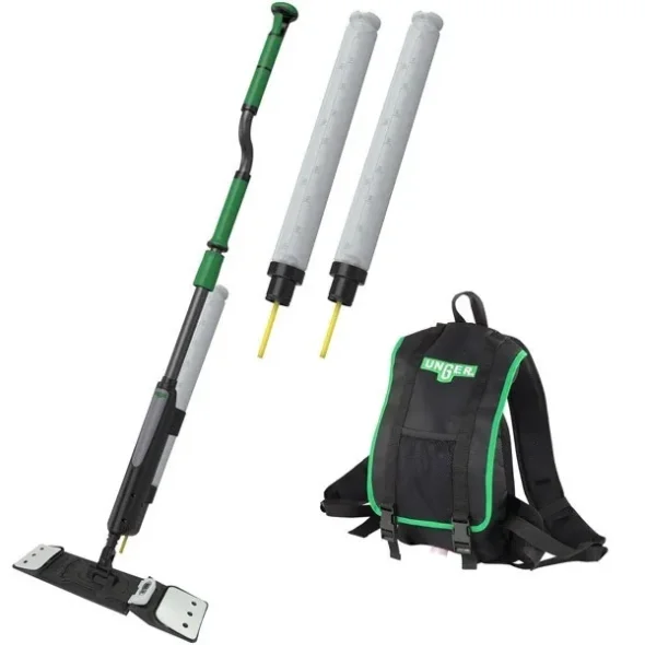 Professionelt frakke elastiske gulvbelægninger som linoleum og PVC. Arbejde med UNGER ergo! voks gulvbelægningssystem kontinuerligt og uden afbrydelse takket være rygsæk med 5-liters kapacitet.