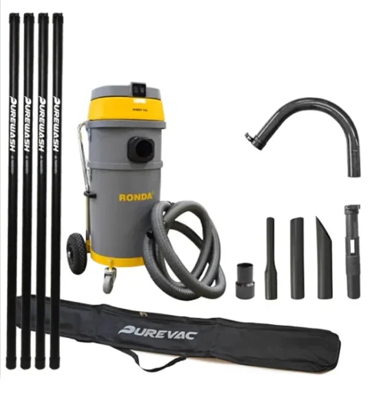 Dette system indeholder alt hvad du skal bruge for at rense tagrender i højden. Sikkert fra jorden kan du fjerne efterårets blade og andet affald fra tagrenderne. PureVAC systemet er et alsidigt system som er let at transportere, let at opsætte, og let at anvende. De lette PureVAC kulfiberrør er designet så de ikke tilstoppes med affald imens der arbejdes.