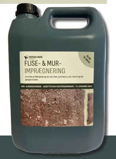 • Flydende produkt, der er klar til brug. • Anvendes på ubehandlede fliser, murværk og beton udendørs. • Giver en super vandafvisende overflade. • Forlænger levetiden på overfladen. • Overfladen forbliver åndbar. • Ændrer ikke overfladens farve. • Let at påføre med sprøjte eller pensel/børste. • Leveres i brugsklar opløsning, hvorved overdosering af aktivstoffet og den dermed forbundne unødige miljøbelastning undgås. • Ikke mærkningspligtig i henhold til CLP og må derfor bruges af både private og professionelle forbrugere til udendørs fliser, sten og murværk og på sugende overflader såsom beton, puds, mursten og cement.