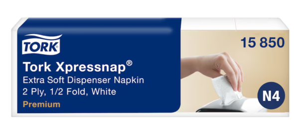 Tork Xpressnap® servietdispensere er det perfekte valg til restauranter med selvbetjening. Systemet vil reducere dit servietforbrug med 25 % sammenlignet med traditionelle servietdispensere. Tork Xpressnap® ekstra bløde, hvide 2-lags dispenserservietter er velegnede til steder, der ikke vil gå på kompromis med hverken praktisk funktion, driftsomkostninger eller kvalitet.
