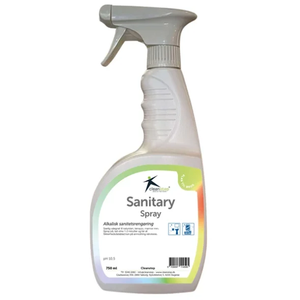 Alkalisk sanitetsrengøring. Særlig velegnet til natursten, terazzo, marmor mm. Spray på, lad virke 1-2 minutter og tør af